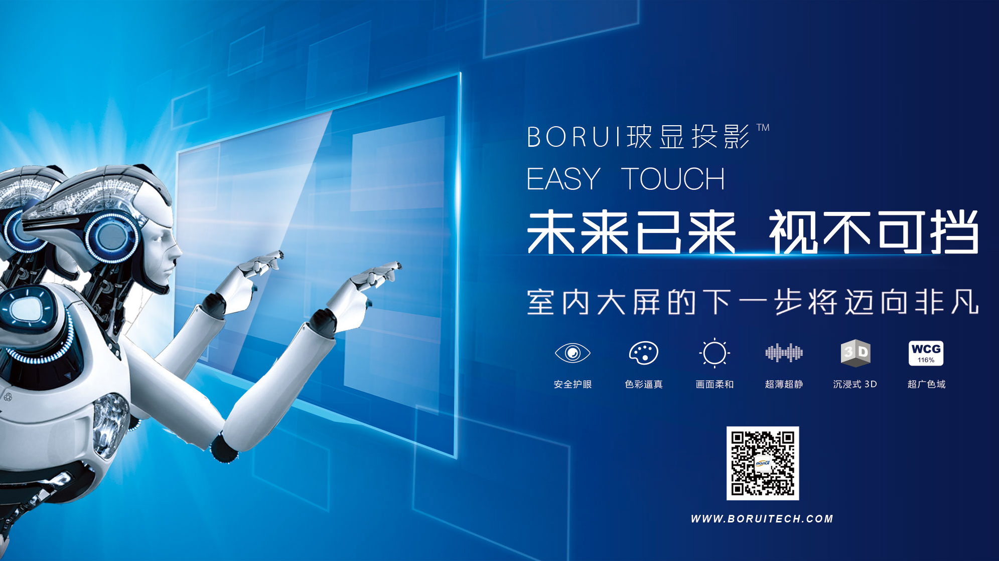 鉑睿光電專(zhuān)家團(tuán)隊(duì)經(jīng)過(guò)多年的技術(shù)積累,歷時(shí)四年嘔心瀝血的研究開(kāi)發(fā),于2014年成功研發(fā)“LED網(wǎng)格投影顯示”技術(shù)。基于該技術(shù)的玻面投影顯示屏(以下簡(jiǎn)稱(chēng)為“玻顯投影”)具有隔絕90%以上藍(lán)光傷害、低亮高灰、大屏畫(huà)面柔和不刺眼、長(zhǎng)時(shí)間觀(guān)看舒適、色彩真實(shí)自然、整屏無(wú)縫、超薄超靜音、維護(hù)便捷等特點(diǎn),引起了業(yè)內(nèi)極大轟動(dòng),開(kāi)創(chuàng)了室內(nèi)大屏顯示新元年。