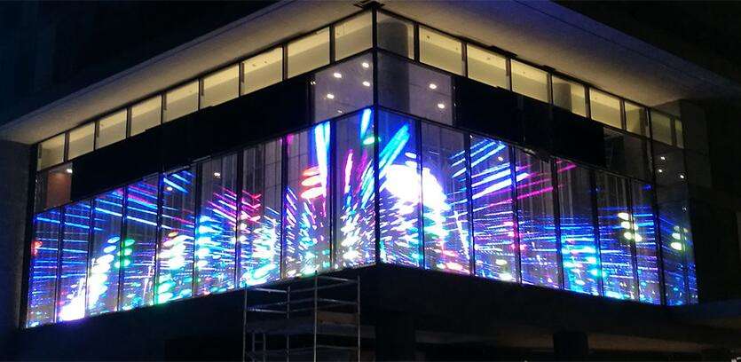 3、美觀:常規(guī)led顯示屏在搭建時需大規(guī)模的鋼架結(jié)構(gòu),費時費力并一定程度影響樓體的造型及美觀度。而led透明屏在安裝時僅需少量鋼架結(jié)構(gòu)即可輕松與墻體完美結(jié)合,對墻體無損害,還可提高其外觀整體美觀度。