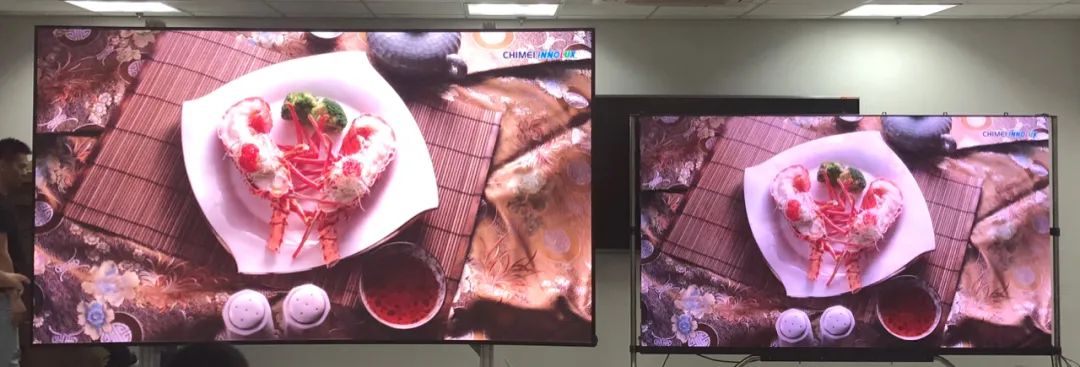 左邊為BORUI玻顯投影,右邊為傳統(tǒng)小間距LED P1.25屏